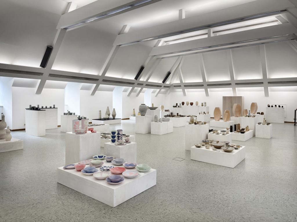 Im großen Ausstellungsraum der Keramikschule präsentieren die Absolvent/innen der Meisterschule ihre Abschlussarbeiten und individuellen Projektarbeiten.